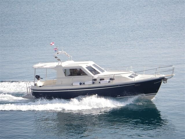 Motorboot Adria 1002 Vektor Jedva, Baujahr 2014, liegt im Sukosan, D-Marin Dalmacija Marina, Zadar & Umgebung, Kroatien vor Anker. Es verfügt über 3 Kabinen und bietet Platz für 6 + 1 Personen mit 2 Toiletten. Bettwäsche und Küchenausstattung sind im Preis inbegriffen.