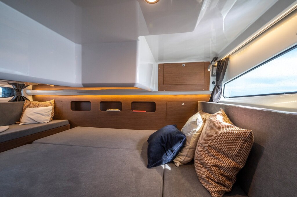 Motorboot Antares 11 OB Falcon, Baujahr 2024, liegt im Marina Frapa, Rogoznica, Sibenik & Umgebung, Kroatien vor Anker. Es verfügt über 2 Kabinen und bietet Platz für 6 Personen mit 1 Toiletten. Bettwäsche und Küchenausstattung sind im Preis inbegriffen.