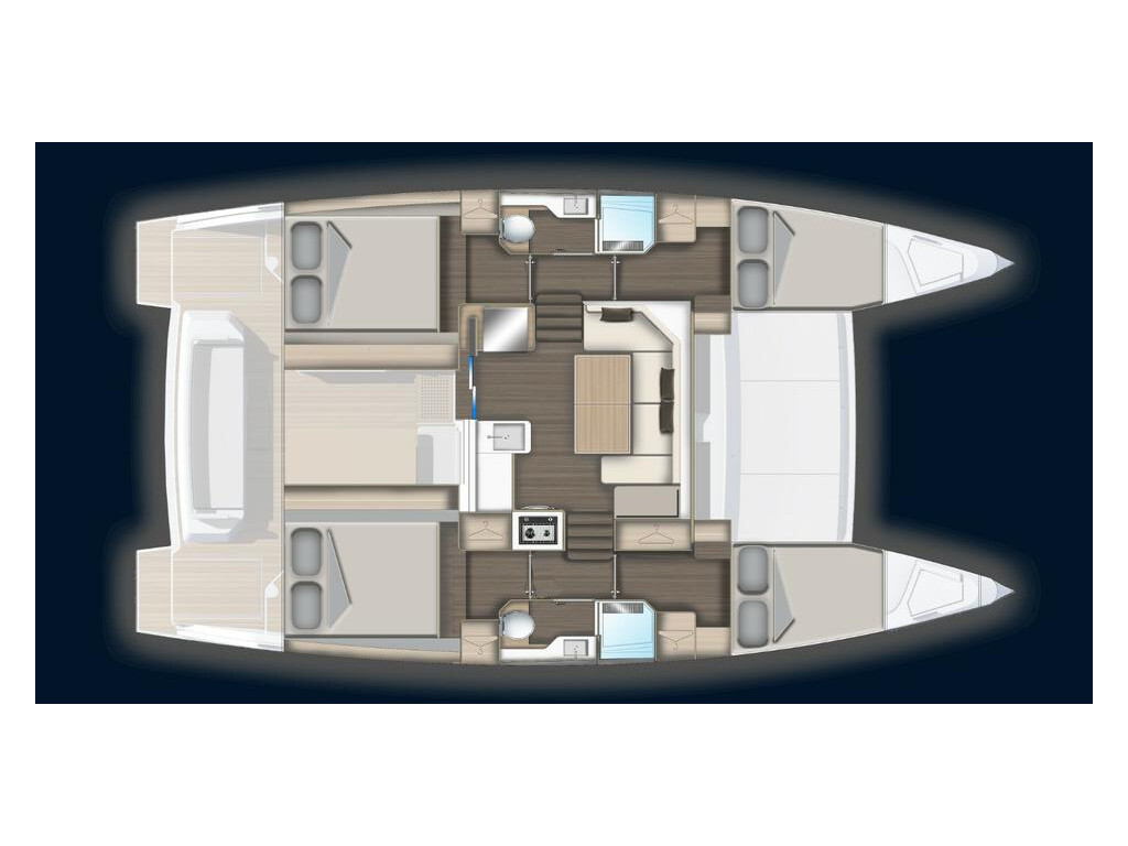 Katamaran Aventura 37 Hakuna, Baujahr 2024, liegt im Ibiza, Club Nàutic Sant Antoni de Portmany, Balearische Inseln, Spanien vor Anker. Es verfügt über 4 Kabinen und bietet Platz für 8 + 2 Personen mit 2 Toiletten. Bettwäsche und Küchenausstattung sind im Preis inbegriffen.