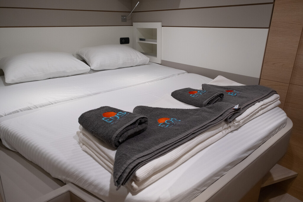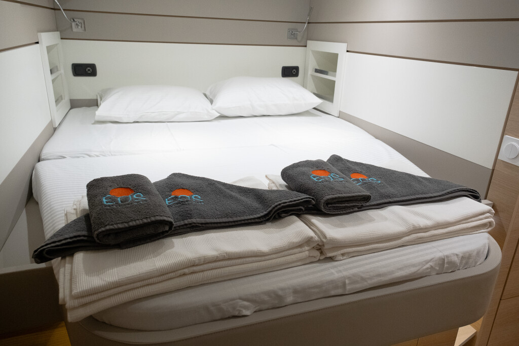 Katamaran Aventura 45 Aura, Baujahr 2025, liegt im Fethiye, Ece Saray Marina Resort, Aegean, Türkei vor Anker. Es verfügt über 6 + 1 Kabinen und bietet Platz für 12 + 1 Personen mit 4 + 1 Toiletten. Bettwäsche und Küchenausstattung sind im Preis inbegriffen.