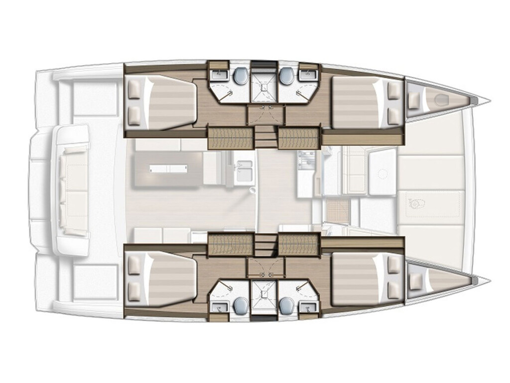 Katamaran Bali 4.2 Charmant, Baujahr 2024, liegt im Marina Kornati, Biograd, Zadar & Umgebung, Kroatien vor Anker. Es verfügt über 4 + 1 Kabinen und bietet Platz für 8 + 2 + 1 Personen mit 4 Toiletten. Bettwäsche und Küchenausstattung sind im Preis inbegriffen.