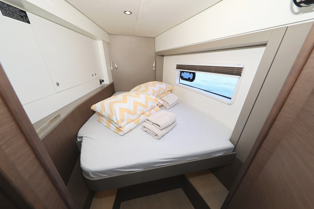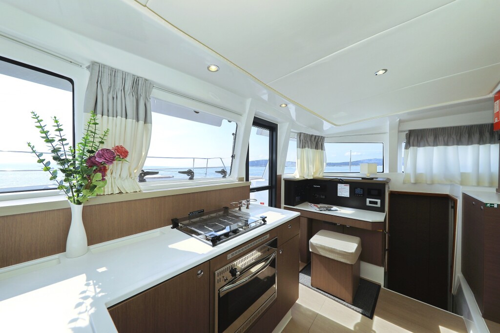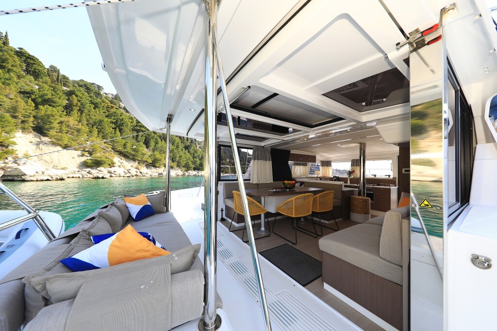 Katamaran Bali 4.2 Clair de Lune, Baujahr 2021, liegt im Marina Kastela, Split & Umgebung, Kroatien vor Anker. Es verfügt über 4 + 1 Kabinen und bietet Platz für 8 + 2 + 1 Personen mit 4 + 1 Toiletten. Bettwäsche und Küchenausstattung sind im Preis inbegriffen.