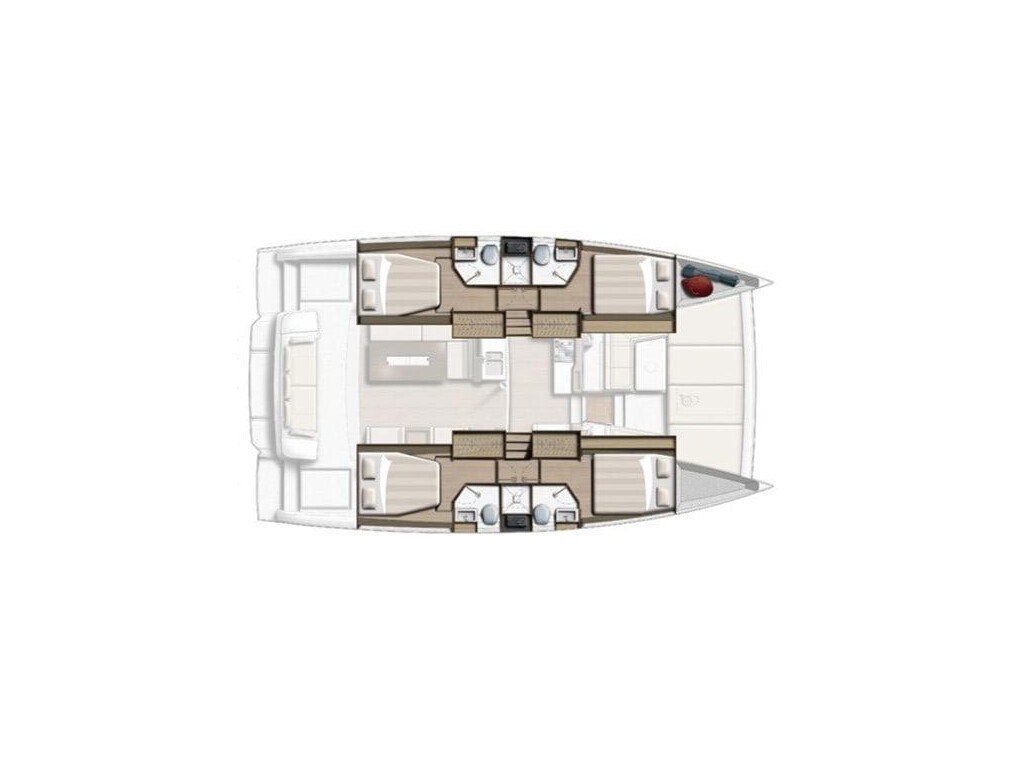 Katamaran Bali 4.2 Kos 42.5, Baujahr 2022, liegt im Kos, Kos Marina, Dodekanes, Griechenland vor Anker. Es verfügt über 4 Kabinen und bietet Platz für 8 + 1 Personen mit 4 + 1 Toiletten. Bettwäsche und Küchenausstattung sind im Preis inbegriffen.