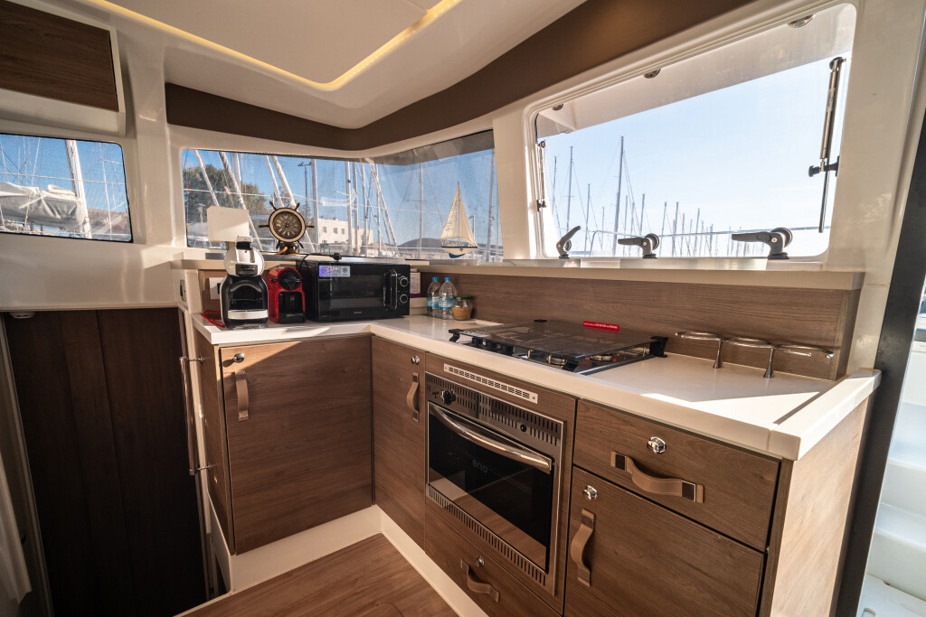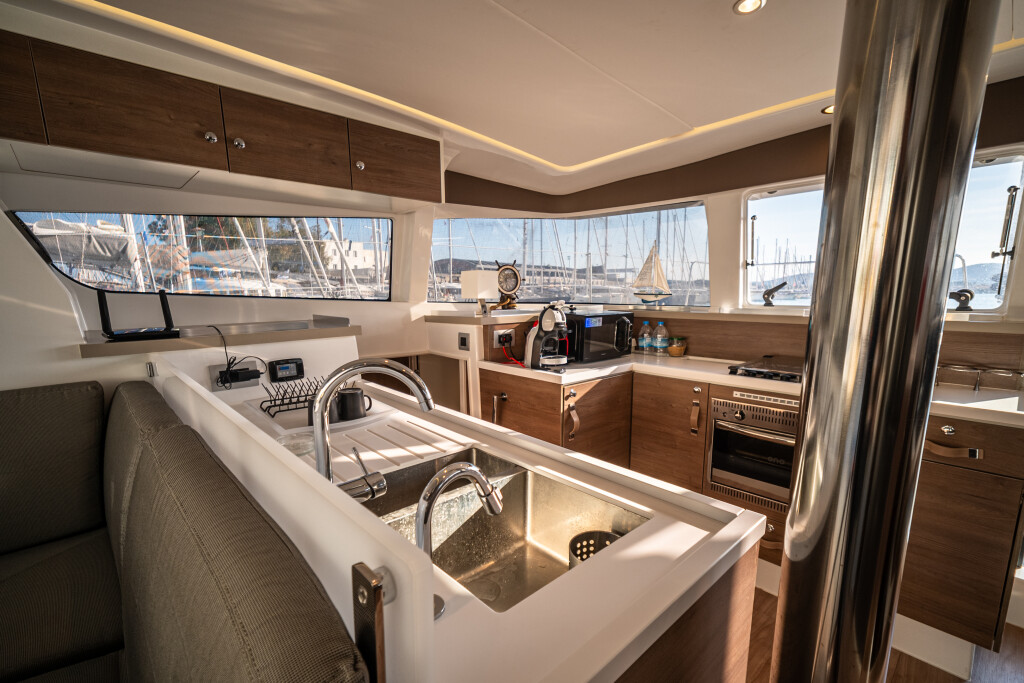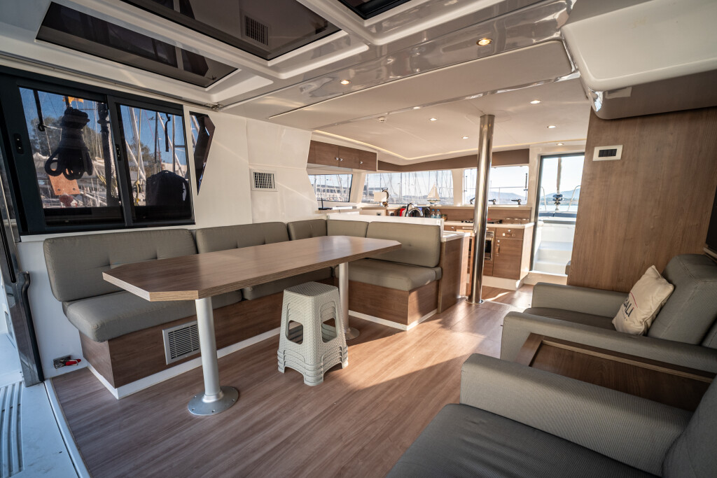 Katamaran Bali 4.2 Silver IX, Baujahr 2023, liegt im Volos, Sporaden, Griechenland vor Anker. Es verfügt über 4 + 1 Kabinen und bietet Platz für 8 + 1 Personen mit 4 + 1 Toiletten. Bettwäsche und Küchenausstattung sind im Preis inbegriffen.