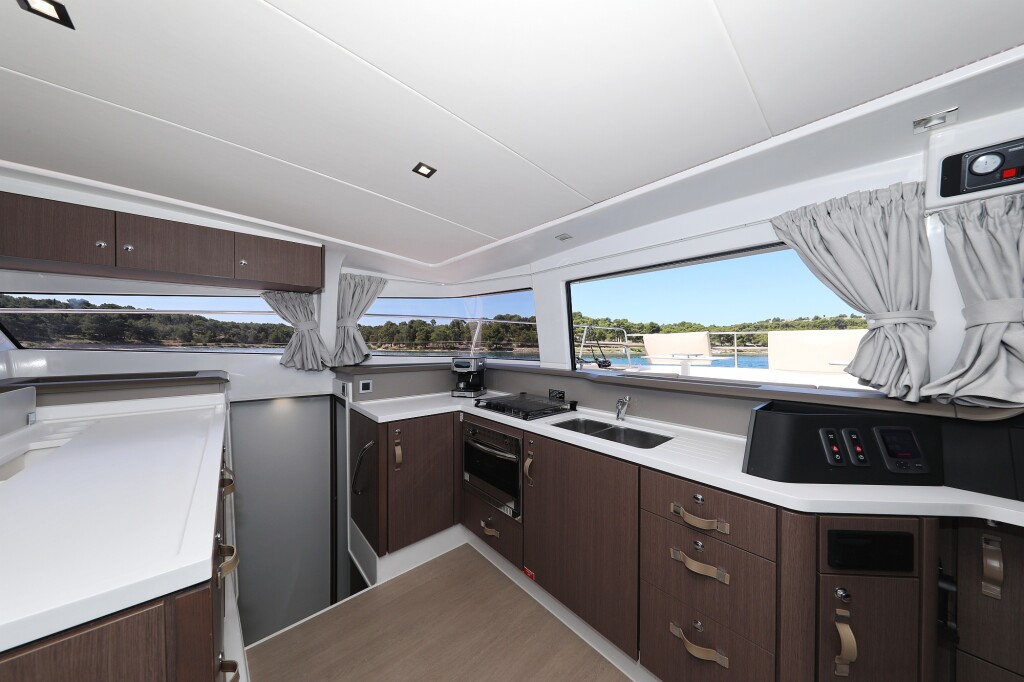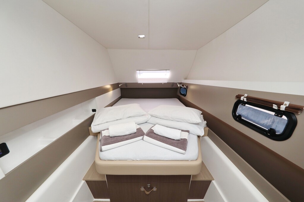 Power catamaran Bali 4.3 MY Sierra, Baujahr 2020, liegt im Sukosan, D-Marin Dalmacija Marina, Zadar & Umgebung, Kroatien vor Anker. Es verfügt über 4 + 1 Kabinen und bietet Platz für 8 + 1 + 1 Personen mit 4 Toiletten. Bettwäsche und Küchenausstattung sind im Preis inbegriffen.