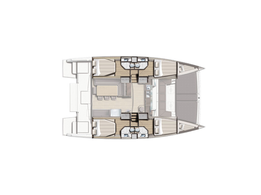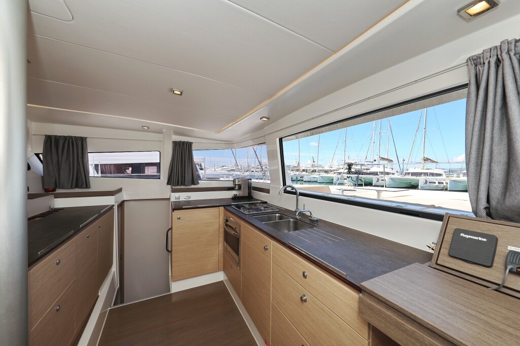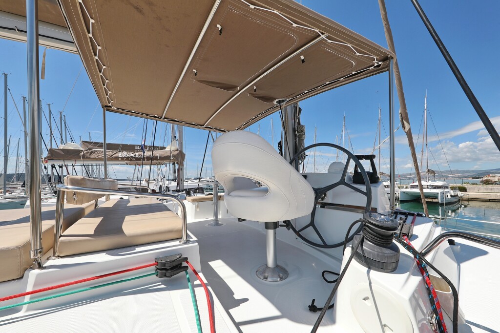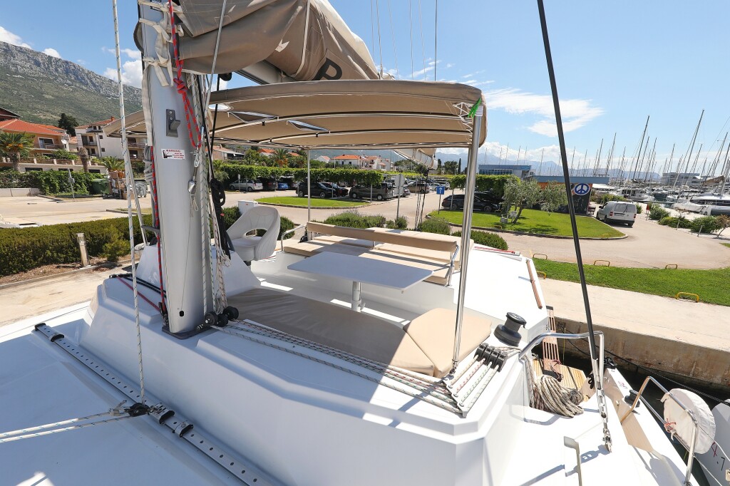 Katamaran Bali 4.3 Summer Loft, Baujahr 2017, liegt im Marina Kornati, Biograd, Zadar & Umgebung, Kroatien vor Anker. Es verfügt über 4 + 2 Kabinen und bietet Platz für 8 + 2 + 2 Personen mit 4 Toiletten. Bettwäsche und Küchenausstattung sind im Preis inbegriffen.