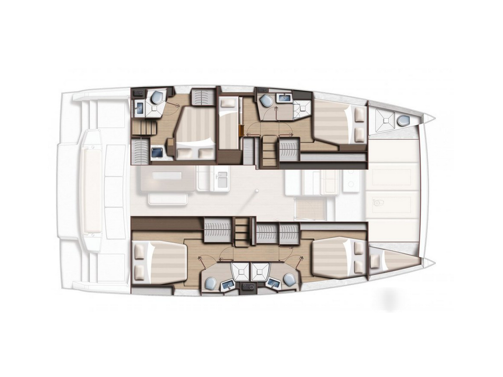 Katamaran Bali 4.6 Amelia, Baujahr 2025, liegt im Bodrum/Turgutreis/D-Marin, Aegean, Türkei vor Anker. Es verfügt über 5 + 1 Kabinen und bietet Platz für 10 + 1 Personen mit 4 Toiletten. Bettwäsche und Küchenausstattung sind im Preis inbegriffen.