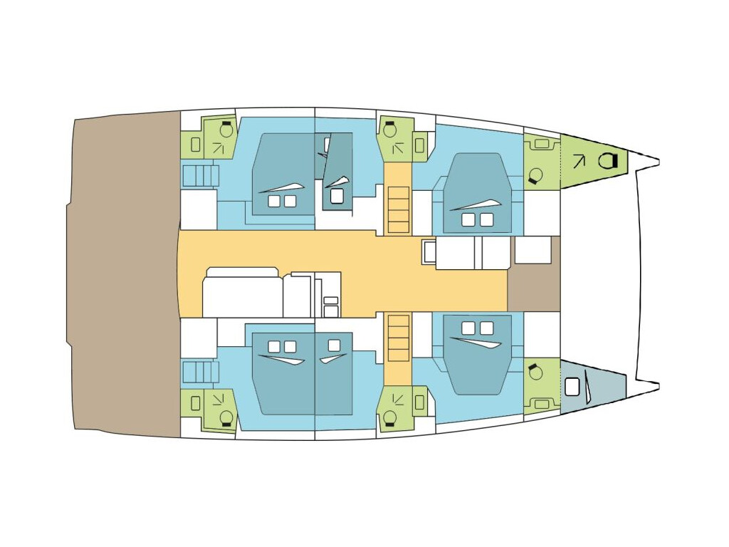 Katamaran Bali 4.8 FIRST TRACKS_DB, Baujahr 2022, liegt im Nassau, Palm Cay Marina, New Providence, Bahamas vor Anker. Es verfügt über 6 + 1 Kabinen und bietet Platz für 12 + 1 Personen mit 6 + 1 Toiletten. Bettwäsche und Küchenausstattung sind im Preis inbegriffen.