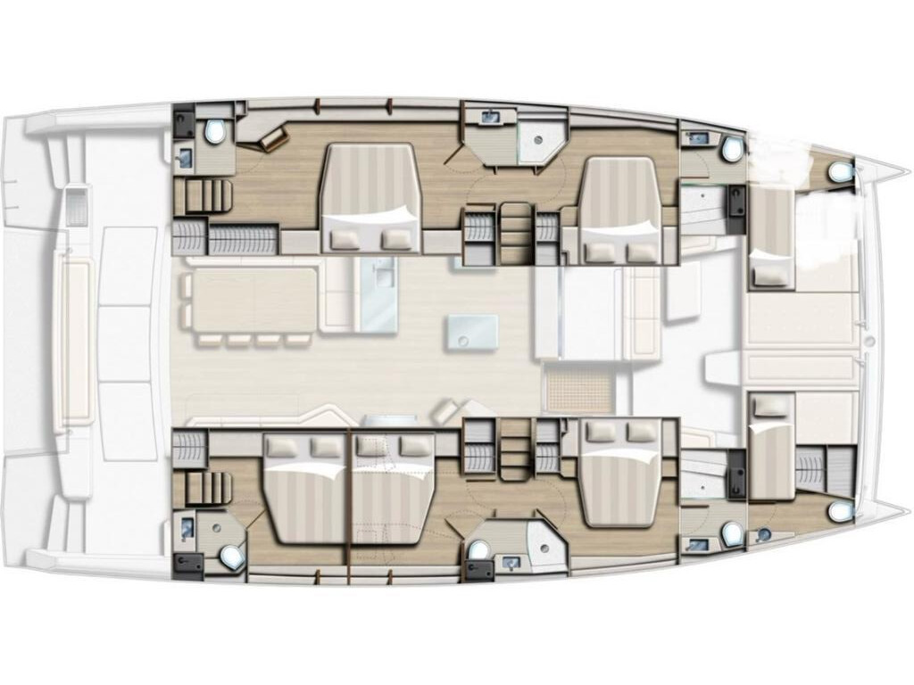 Katamaran Bali 5.4 Joža, Baujahr 2023, liegt im Trogir, Marina Trogir (ex.SCT), Split & Umgebung, Kroatien vor Anker. Es verfügt über 5 + 2 Kabinen und bietet Platz für 10 + 2 Personen mit 5 + 1 Toiletten. Bettwäsche und Küchenausstattung sind im Preis inbegriffen.