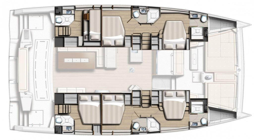 Katamaran Bali 5.4 Libra, Baujahr 2024, liegt im Athens, Alimos marina, Peloponnes, Griechenland vor Anker. Es verfügt über 5 Kabinen und bietet Platz für 10 Personen mit 5 Toiletten. Bettwäsche und Küchenausstattung sind im Preis inbegriffen.