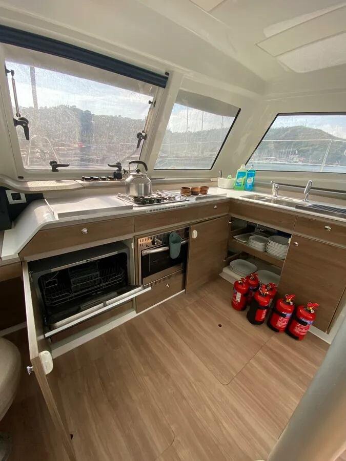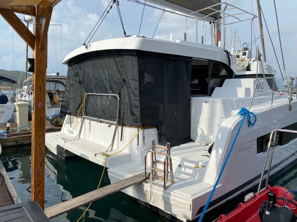 Katamaran Bali Catspace Moana 2, Baujahr 2023, liegt im Göcek Mucev Marina, Aegean, Türkei vor Anker. Es verfügt über 4 Kabinen und bietet Platz für 8 + 1 Personen mit 4 Toiletten. Bettwäsche und Küchenausstattung sind im Preis inbegriffen.