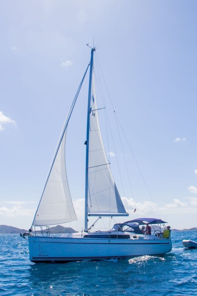 Segelyacht Bavaria 34 Maverick, Baujahr 2017, liegt im BVI, Tortola, Nanny Cay Marina, British Virgin Islands, Britische Jungferninseln (BVI) vor Anker. Es verfügt über 3 Kabinen und bietet Platz für 6 Personen mit 1 Toiletten. Bettwäsche und Küchenausstattung sind im Preis inbegriffen.