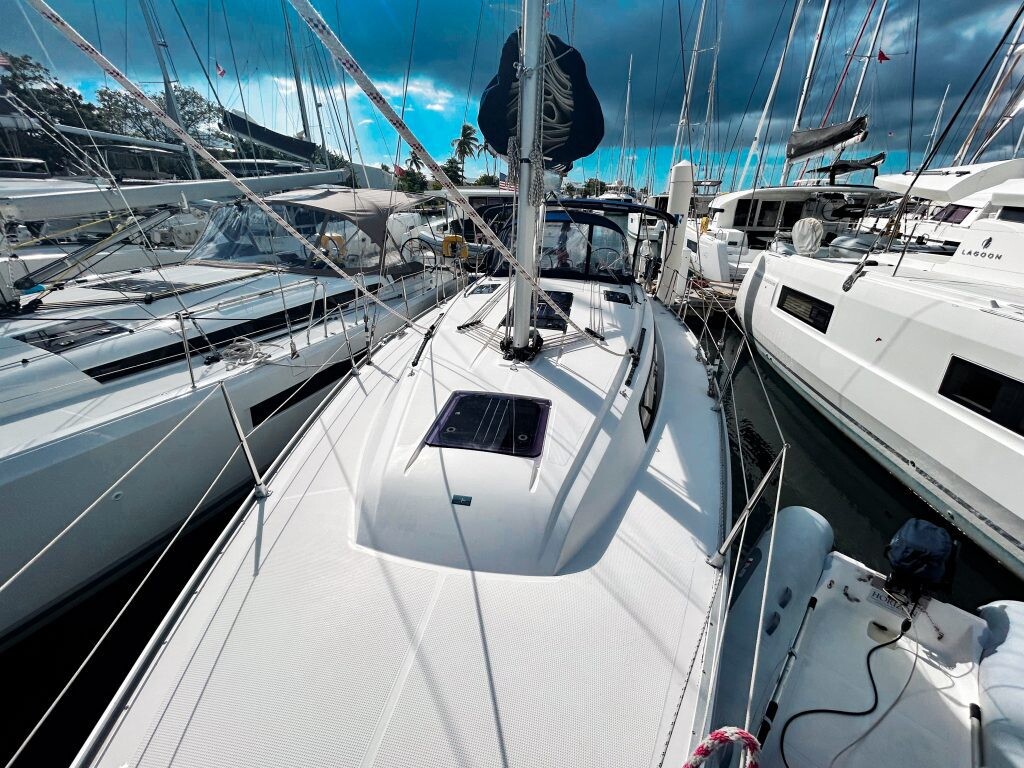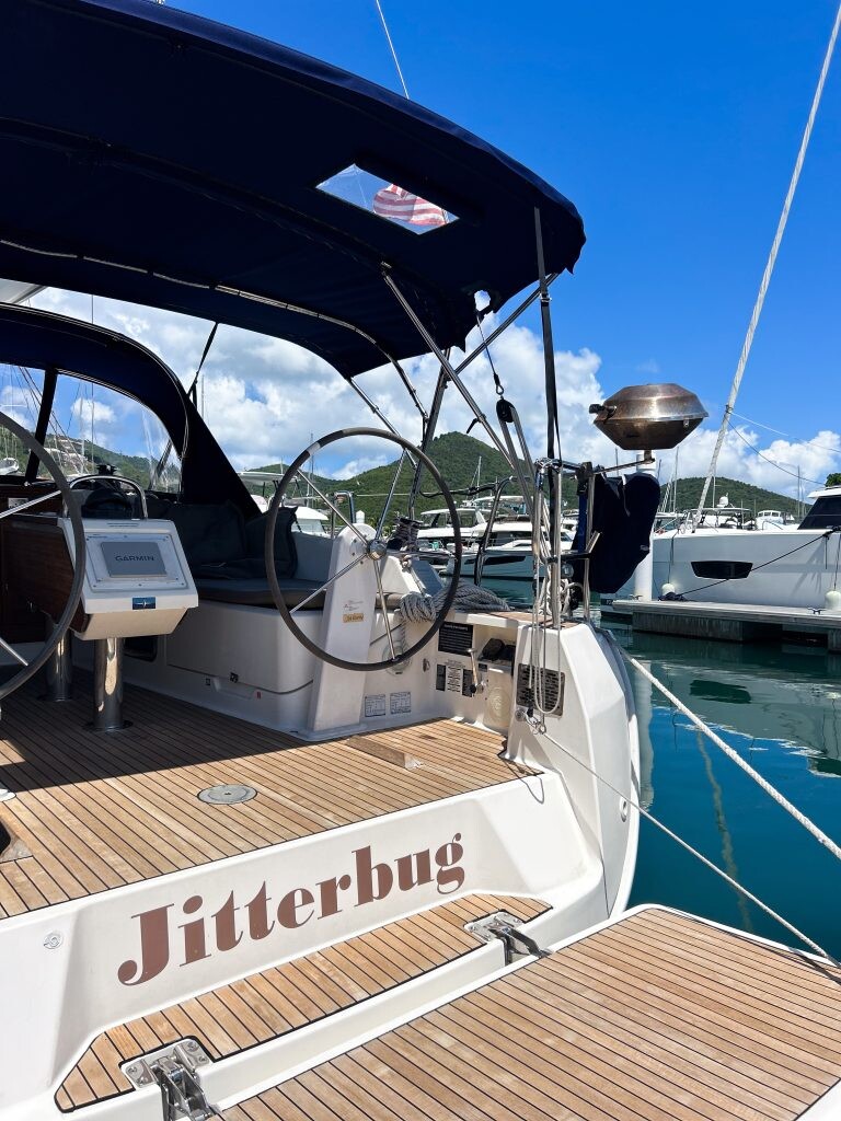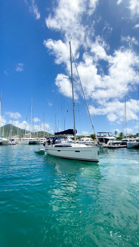Segelyacht Bavaria 37 Jitterbug, Baujahr 2017, liegt im BVI, Tortola, Nanny Cay Marina, British Virgin Islands, Britische Jungferninseln (BVI) vor Anker. Es verfügt über 2 Kabinen und bietet Platz für 4 Personen mit 1 Toiletten. Bettwäsche und Küchenausstattung sind im Preis inbegriffen.