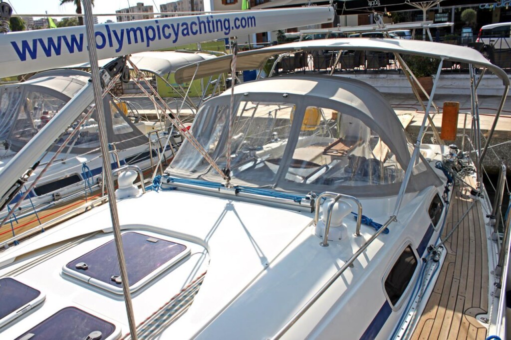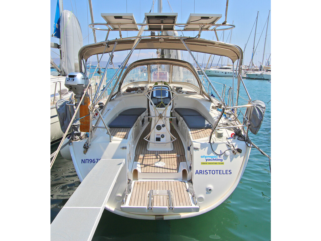 Segelyacht Bavaria 38 Cruiser Aristoteles, Baujahr 2008, liegt im Lavrion, main port, Peloponnes, Griechenland vor Anker. Es verfügt über 3 Kabinen und bietet Platz für 6 Personen mit 1 Toiletten. Bettwäsche und Küchenausstattung sind im Preis inbegriffen.