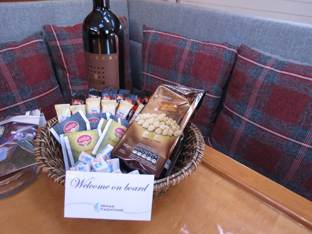 Segelyacht Bavaria 43 Cruiser Yilki, Baujahr 2009, liegt im Setur Göcek Village Port, Aegean, Türkei vor Anker. Es verfügt über 3 Kabinen und bietet Platz für 6 Personen mit 2 Toiletten. Bettwäsche und Küchenausstattung sind im Preis inbegriffen.
