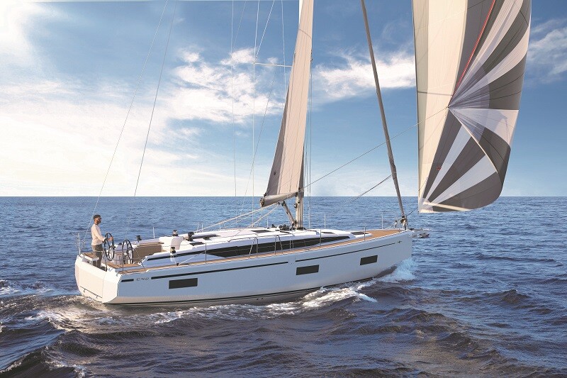 Segelyacht Bavaria C42 Fiesta, Baujahr 2021, liegt im Fethiye, Yacht Classic Hotel Marina, Aegean, Türkei vor Anker. Es verfügt über 3 Kabinen und bietet Platz für 6 + 1 Personen mit 2 Toiletten. Bettwäsche und Küchenausstattung sind im Preis inbegriffen.
