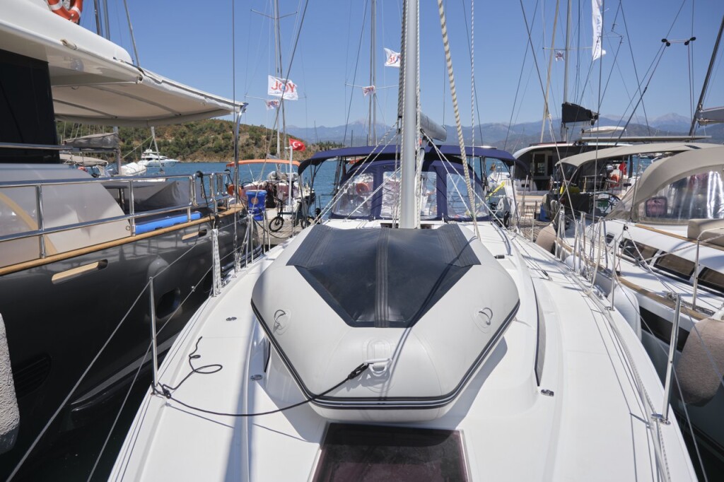 Segelyacht Bavaria C42 Selene, Baujahr 2024, liegt im Fethiye, Ece Saray Marina Resort, Aegean, Türkei vor Anker. Es verfügt über 3 Kabinen und bietet Platz für 6 + 2 Personen mit 2 Toiletten. Bettwäsche und Küchenausstattung sind im Preis inbegriffen.