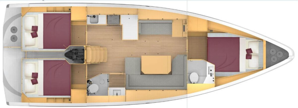 Segelyacht Bavaria C42 Summertime, Baujahr 2024, liegt im Marina Pirovac, Sibenik & Umgebung, Kroatien vor Anker. Es verfügt über 3 Kabinen und bietet Platz für 6 + 1 Personen mit 2 Toiletten. Bettwäsche und Küchenausstattung sind im Preis inbegriffen.