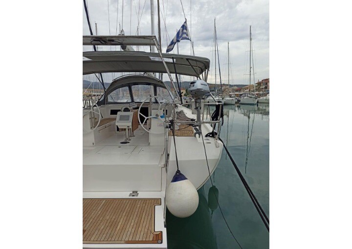 Segelyacht Bavaria C45 Nutmeg, Baujahr 2019, liegt im Lefkas main port, Ionisches Meer, Griechenland vor Anker. Es verfügt über 4 Kabinen und bietet Platz für 8 + 2 Personen mit 3 Toiletten. Bettwäsche und Küchenausstattung sind im Preis inbegriffen.