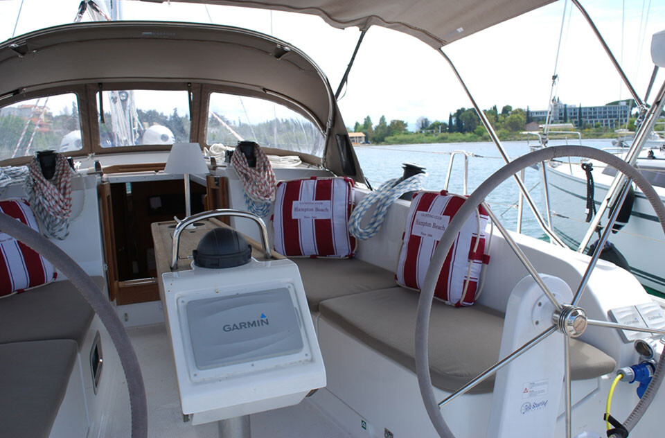 Segelyacht Bavaria Cruiser 41 Kalypso, Baujahr 2015, liegt im Corfu, Gouvia Marina, Ionisches Meer, Griechenland vor Anker. Es verfügt über 3 Kabinen und bietet Platz für 6 Personen mit 2 Toiletten. Bettwäsche und Küchenausstattung sind im Preis inbegriffen.