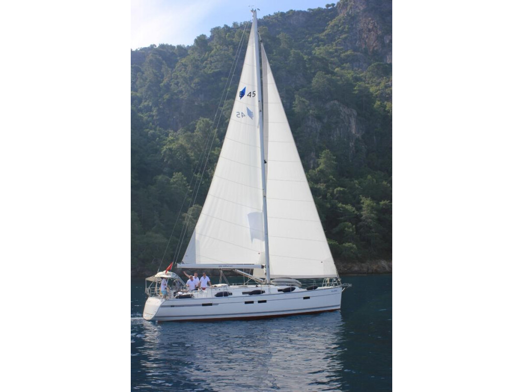 Segelyacht Bavaria Cruiser 45 Sail Bravo, Baujahr 2011, liegt im Fethiye, Ece Saray Marina Resort, Aegean, Türkei vor Anker. Es verfügt über 4 Kabinen und bietet Platz für 8 Personen mit 3 Toiletten. Bettwäsche und Küchenausstattung sind im Preis inbegriffen.