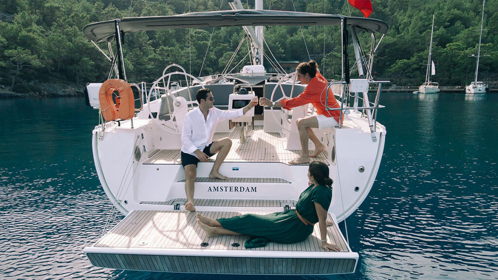 Segelyacht Bavaria Cruiser 46 Amsterdam, Baujahr 2020, liegt im Fethiye, Yacht Classic Hotel Marina, Aegean, Türkei vor Anker. Es verfügt über 4 Kabinen und bietet Platz für 8 Personen mit 3 Toiletten. Bettwäsche und Küchenausstattung sind im Preis inbegriffen.