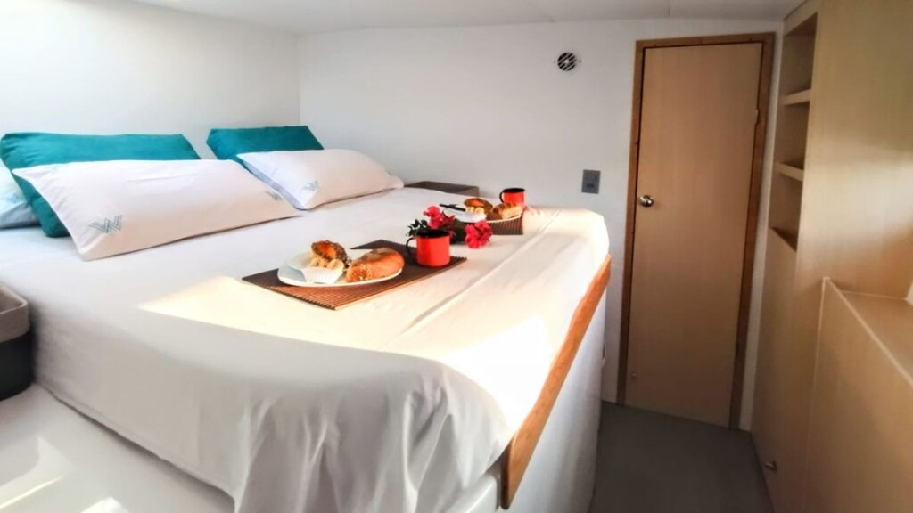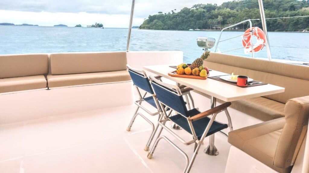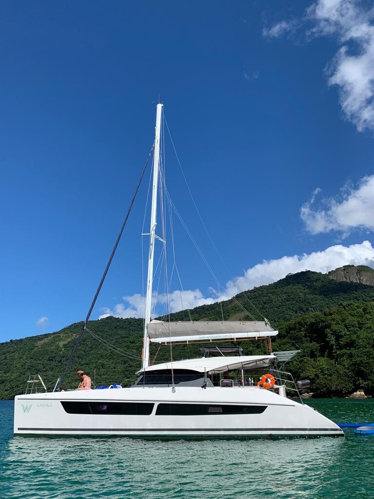 Katamaran CatFlash 43 Kanhka, Baujahr 2022, liegt im Farol de Paraty Marina, Southeast, Brasil, Brasilien vor Anker. Es verfügt über 4 Kabinen und bietet Platz für 8 Personen mit 4 Toiletten. Bettwäsche und Küchenausstattung sind im Preis inbegriffen.