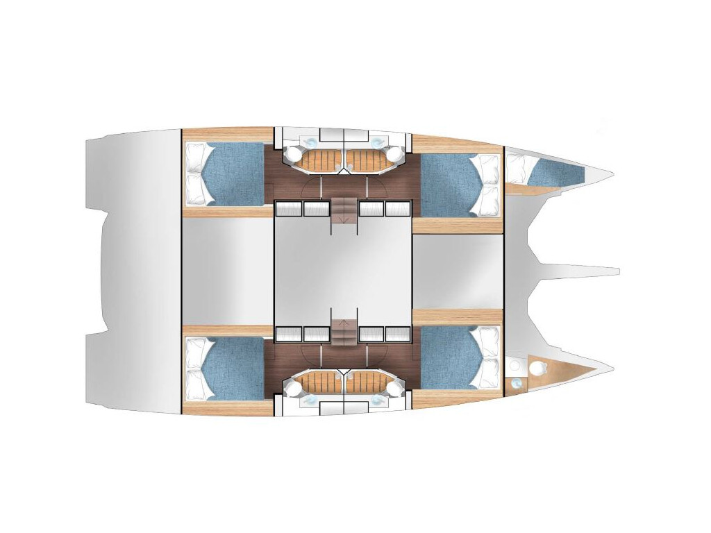 Katamaran Cervetti 44 Alba, Baujahr 2025, liegt im Marina Kremik, Primosten, Sibenik & Umgebung, Kroatien vor Anker. Es verfügt über 4 + 1 Kabinen und bietet Platz für 8 + 1 Personen mit 4 + 1 Toiletten. Bettwäsche und Küchenausstattung sind im Preis inbegriffen.