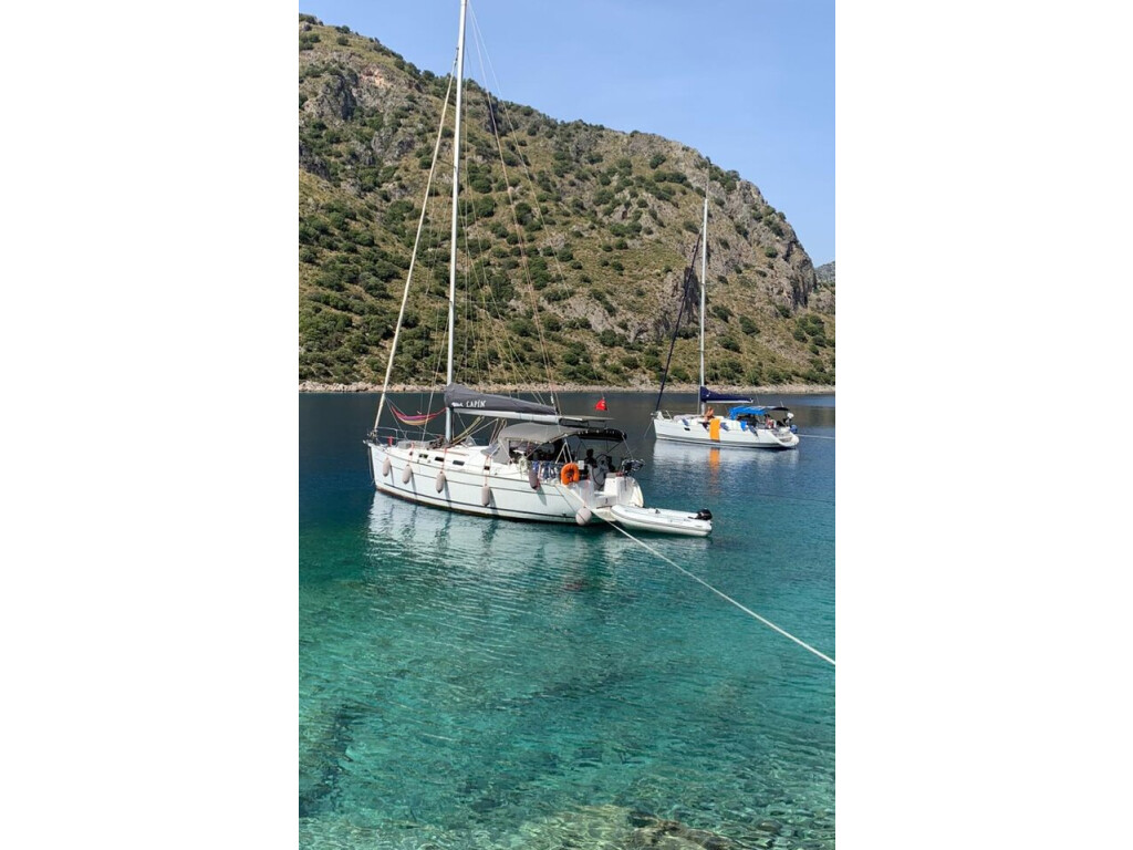Segelyacht Cyclades 39 Lapin, Baujahr 2007, liegt im Fethiye, Ece Saray Marina Resort, Aegean, Türkei vor Anker. Es verfügt über 2 + 1 Kabinen und bietet Platz für 4 Personen mit 2 Toiletten. Bettwäsche und Küchenausstattung sind im Preis inbegriffen.