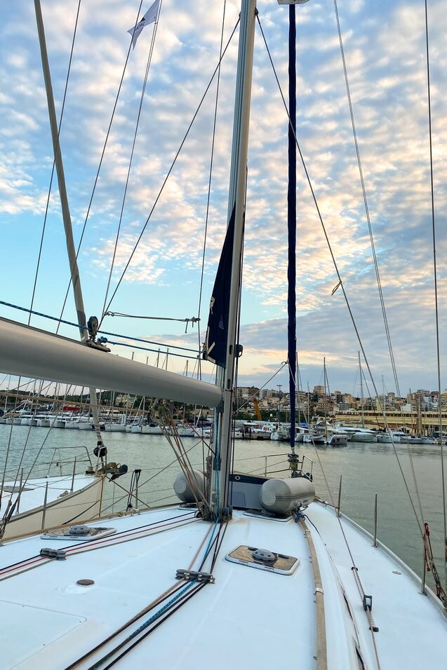 Segelyacht Cyclades 50.5 Leonidas, Baujahr 2007, liegt im Athens, Alimos marina, Peloponnes, Griechenland vor Anker. Es verfügt über 5 + 1 Kabinen und bietet Platz für 10 + 2 Personen mit 3 + 1 Toiletten. Bettwäsche und Küchenausstattung sind im Preis inbegriffen.