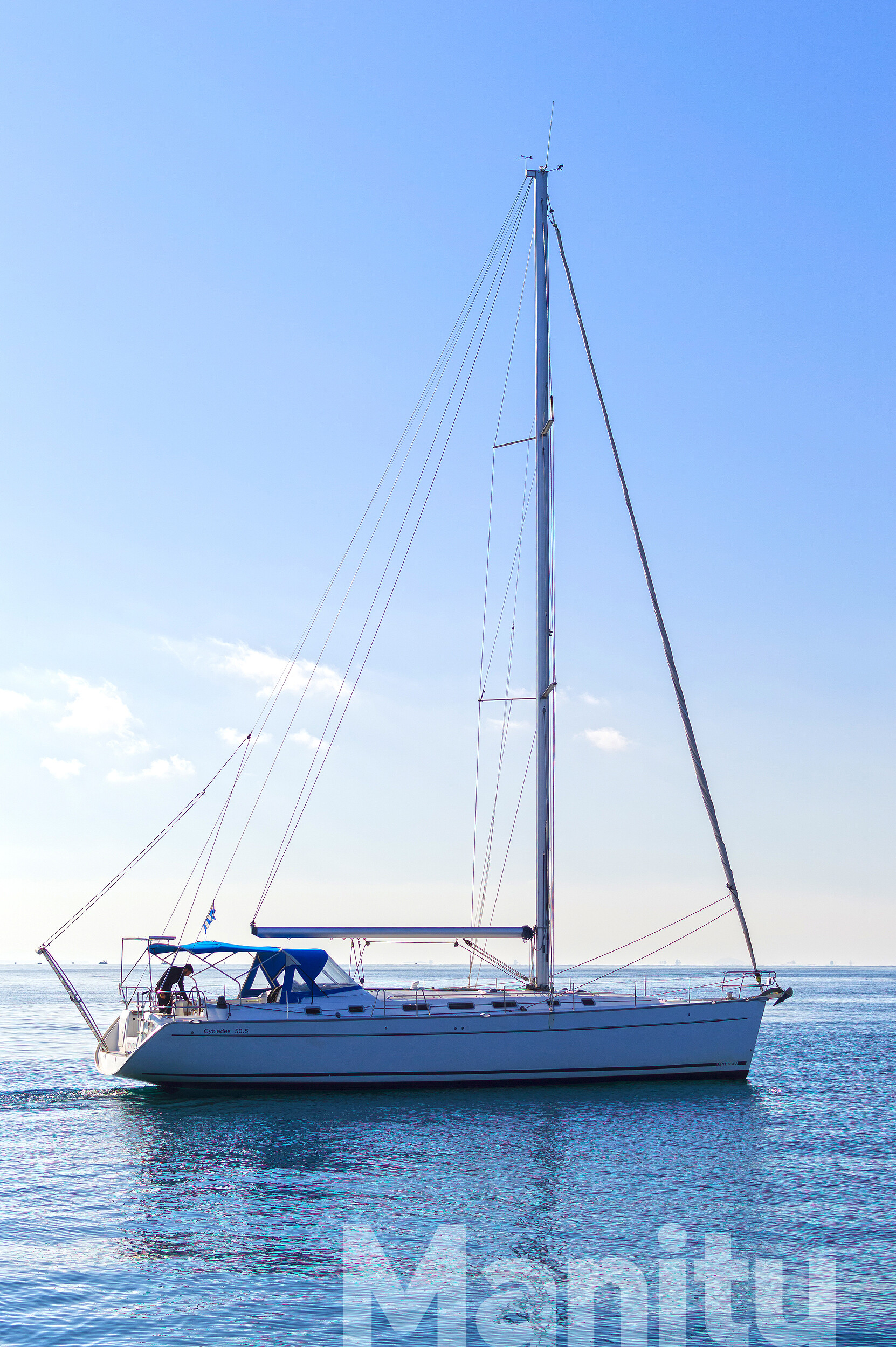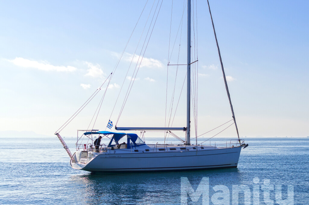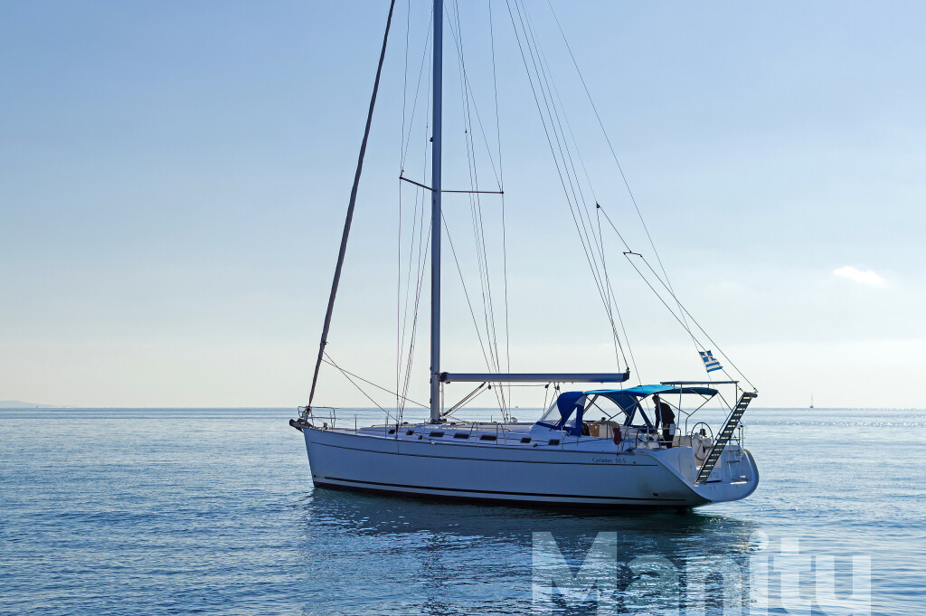 Segelyacht Cyclades 50.5 Manitu, Baujahr 2008, liegt im Athens, Alimos marina, Peloponnes, Griechenland vor Anker. Es verfügt über 5 + 1 Kabinen und bietet Platz für 10 + 1 Personen mit 3 + 1 Toiletten. Bettwäsche und Küchenausstattung sind im Preis inbegriffen.