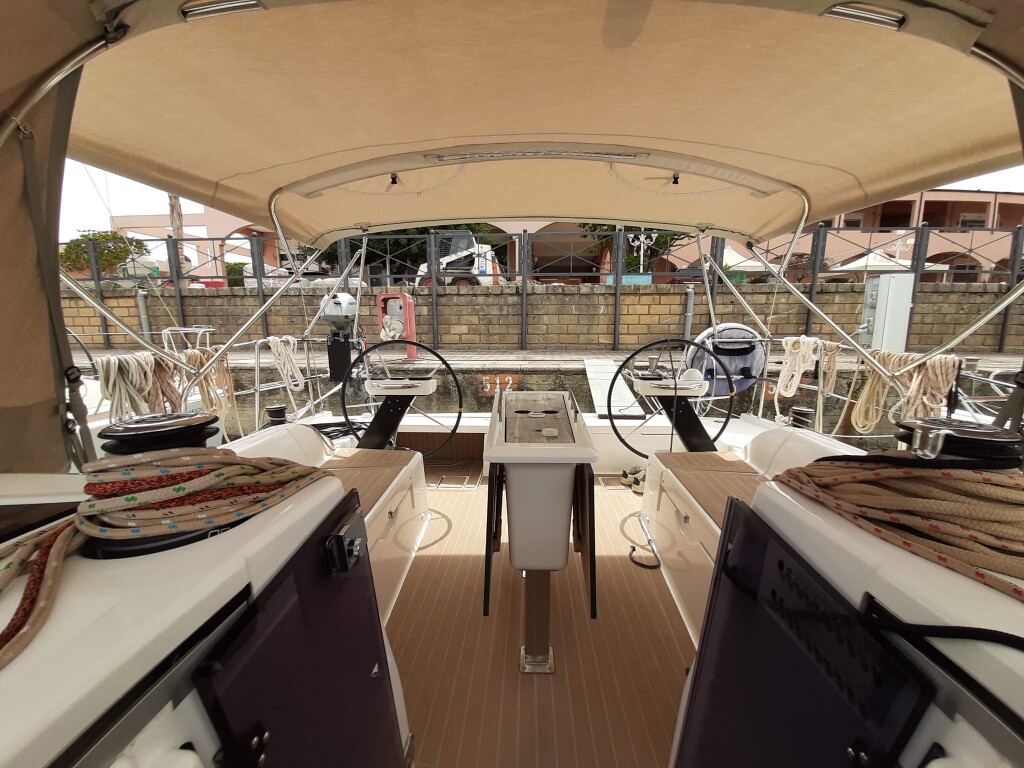 Segelyacht Dufour 390 GL Inycum, Baujahr 2019, liegt im Sicily, Portorosa, Sizilien, Italien vor Anker. Es verfügt über 3 Kabinen und bietet Platz für 6 + 2 Personen mit 3 Toiletten. Bettwäsche und Küchenausstattung sind im Preis inbegriffen.