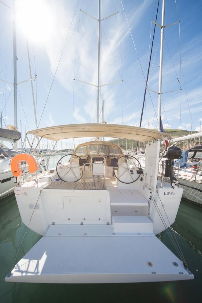Segelyacht Dufour 460 GL LIPSI, Baujahr 2018, liegt im Trogir, Yachtclub Seget (Marina Baotić), Split & Umgebung, Kroatien vor Anker. Es verfügt über 4 Kabinen und bietet Platz für 8 + 2 Personen mit 4 Toiletten. Bettwäsche und Küchenausstattung sind im Preis inbegriffen.