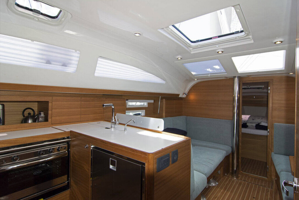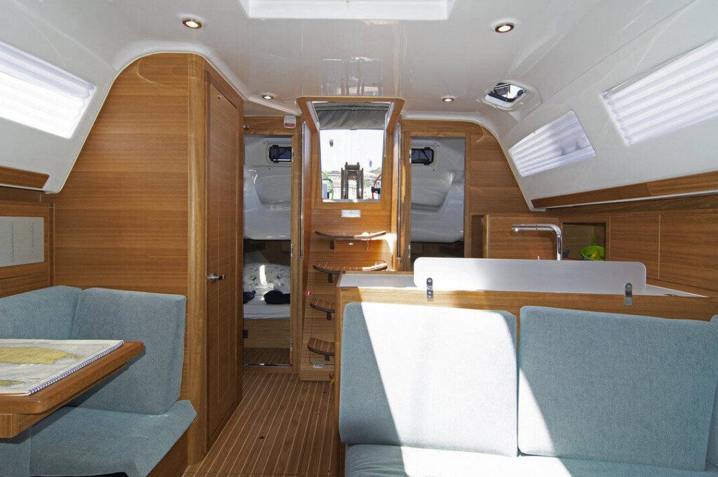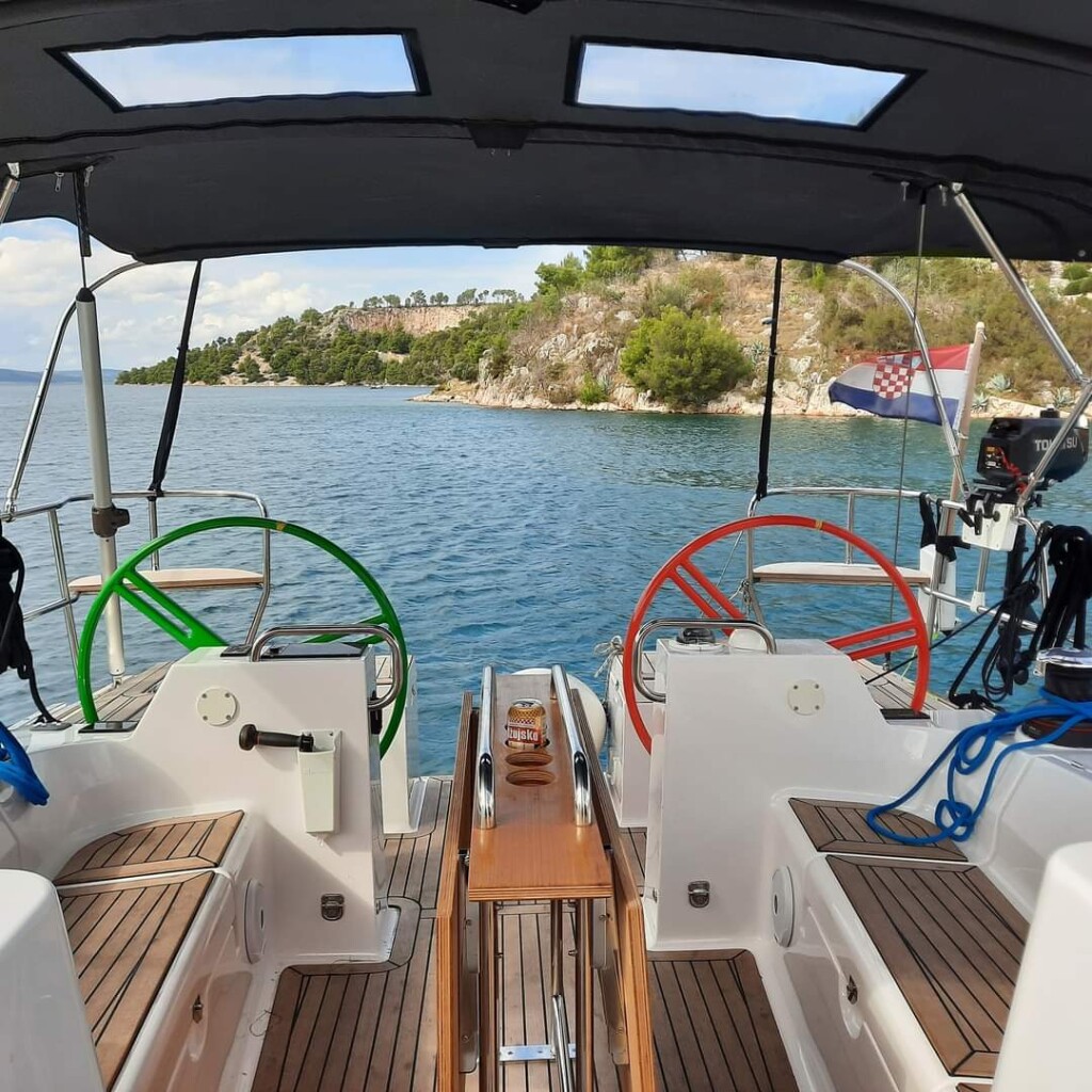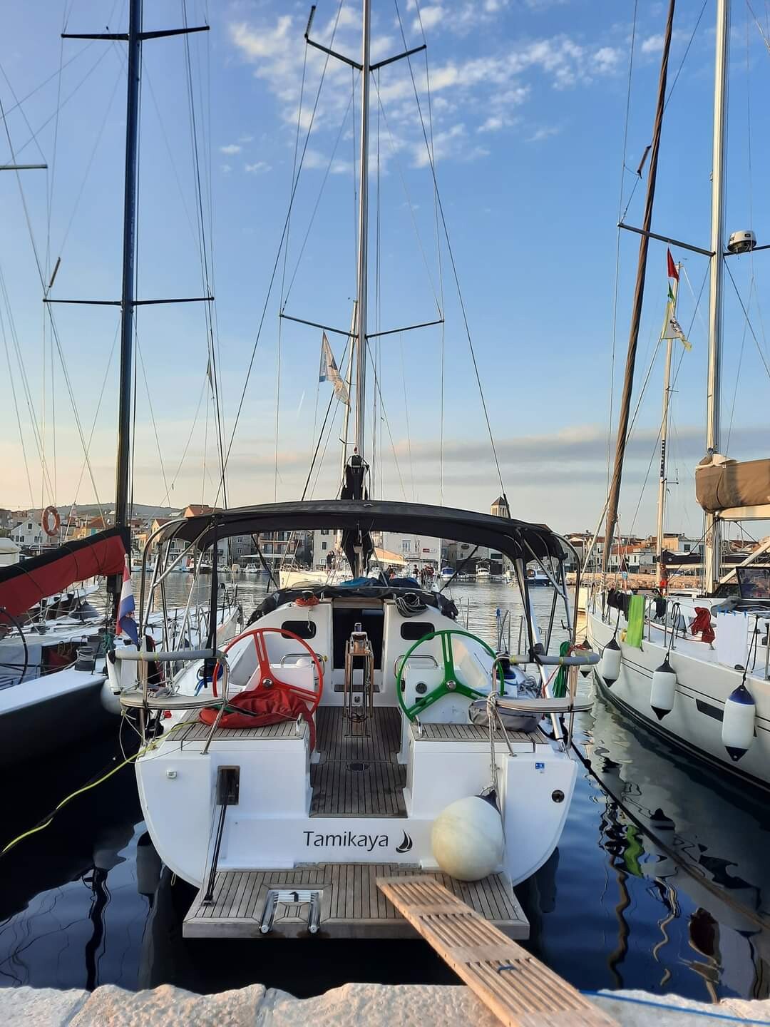 Segelyacht Elan Impression 40.1 Tamikaya, Baujahr 2020, liegt im Marina Punat, Krk, Kvarner, Kroatien vor Anker. Es verfügt über 3 Kabinen und bietet Platz für 6 + 2 Personen mit 2 Toiletten. Bettwäsche und Küchenausstattung sind im Preis inbegriffen.