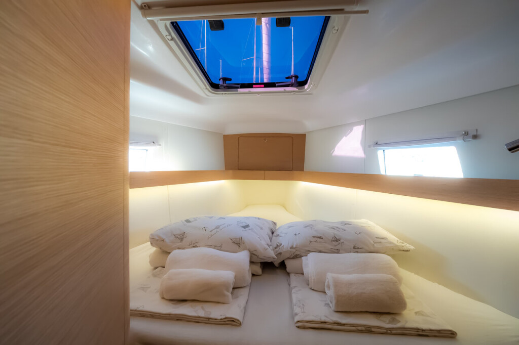 Segelyacht Elan Impression 45 Adelyna, Baujahr 2018, liegt im Marina Kornati, Biograd, Zadar & Umgebung, Kroatien vor Anker. Es verfügt über 4 Kabinen und bietet Platz für 8 + 2 Personen mit 2 Toiletten. Bettwäsche und Küchenausstattung sind im Preis inbegriffen.