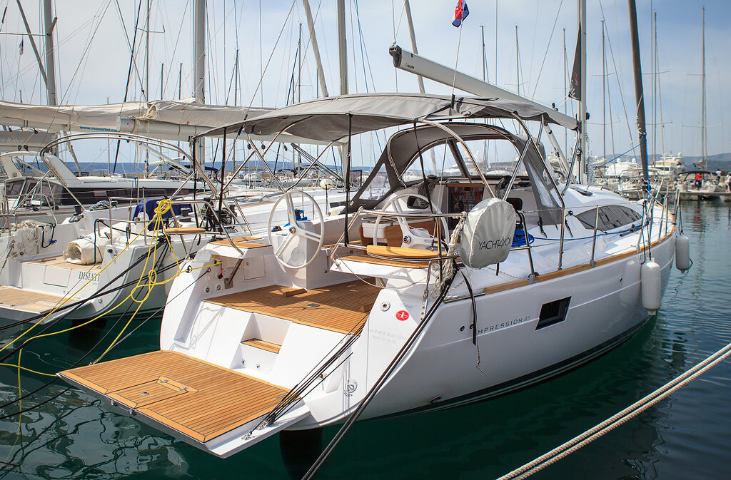 Die Elan Impression 45 ist besonders beliebt aufgrund ihrer besonderen Ausstattung wie Teakholz im Cockpit, Inverter, Bugstrahlruder, Cockpit Kissen, Heizung, Autopilot, Schwimmwesten, Badeplattform. Bei Fragen steht Ihnen unser Team gerne persönlich zur Verfügung!
