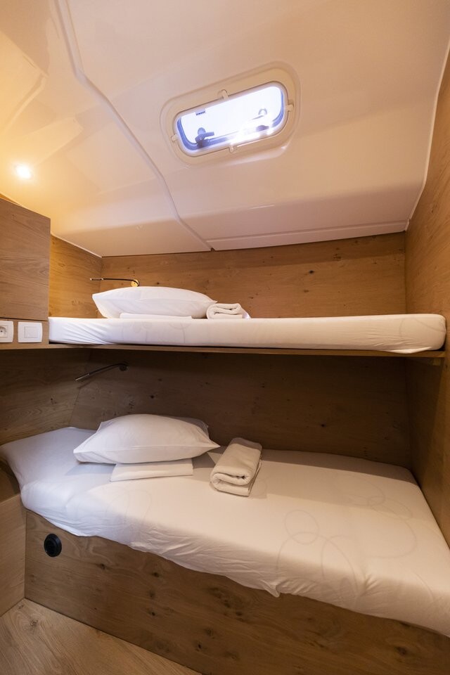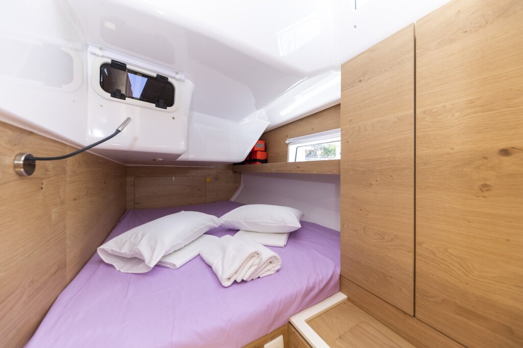 Segelyacht Elan Impression 45 Supreme, Baujahr 2023, liegt im Marina Zadar (ex. Tankerkomerc), Zadar & Umgebung, Kroatien vor Anker. Es verfügt über 4 Kabinen und bietet Platz für 8 + 2 Personen mit 2 Toiletten. Bettwäsche und Küchenausstattung sind im Preis inbegriffen.