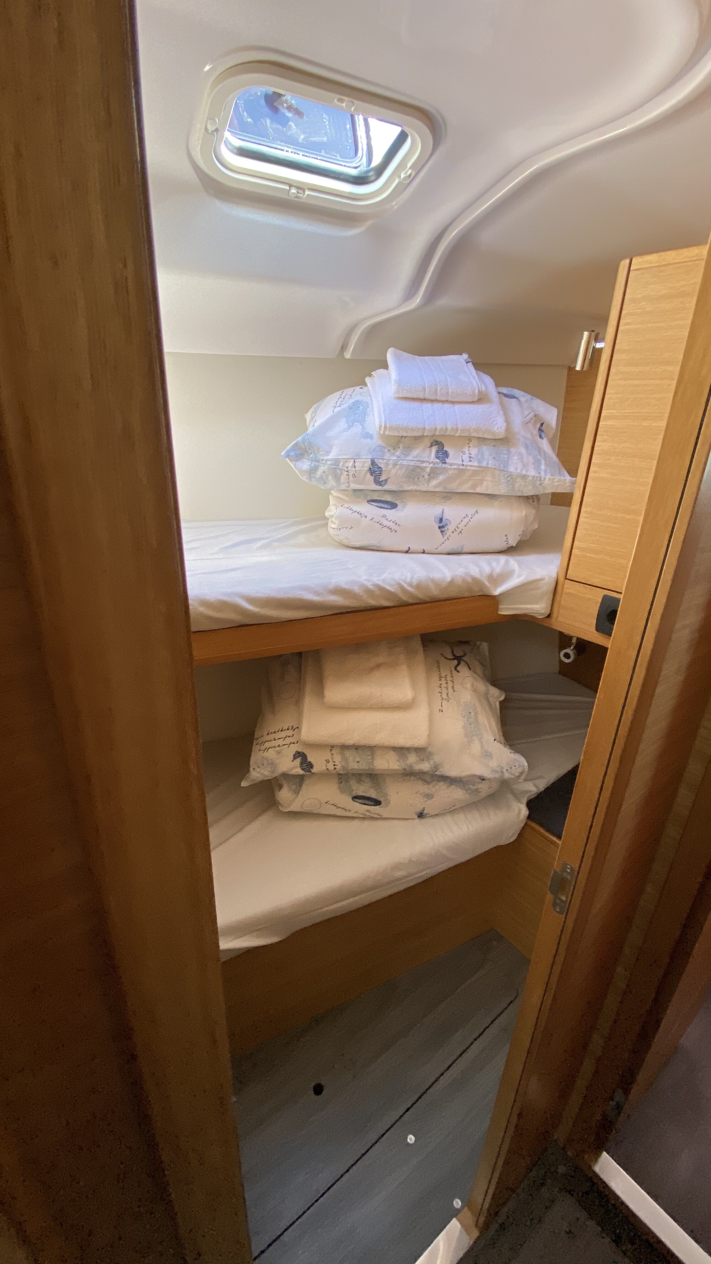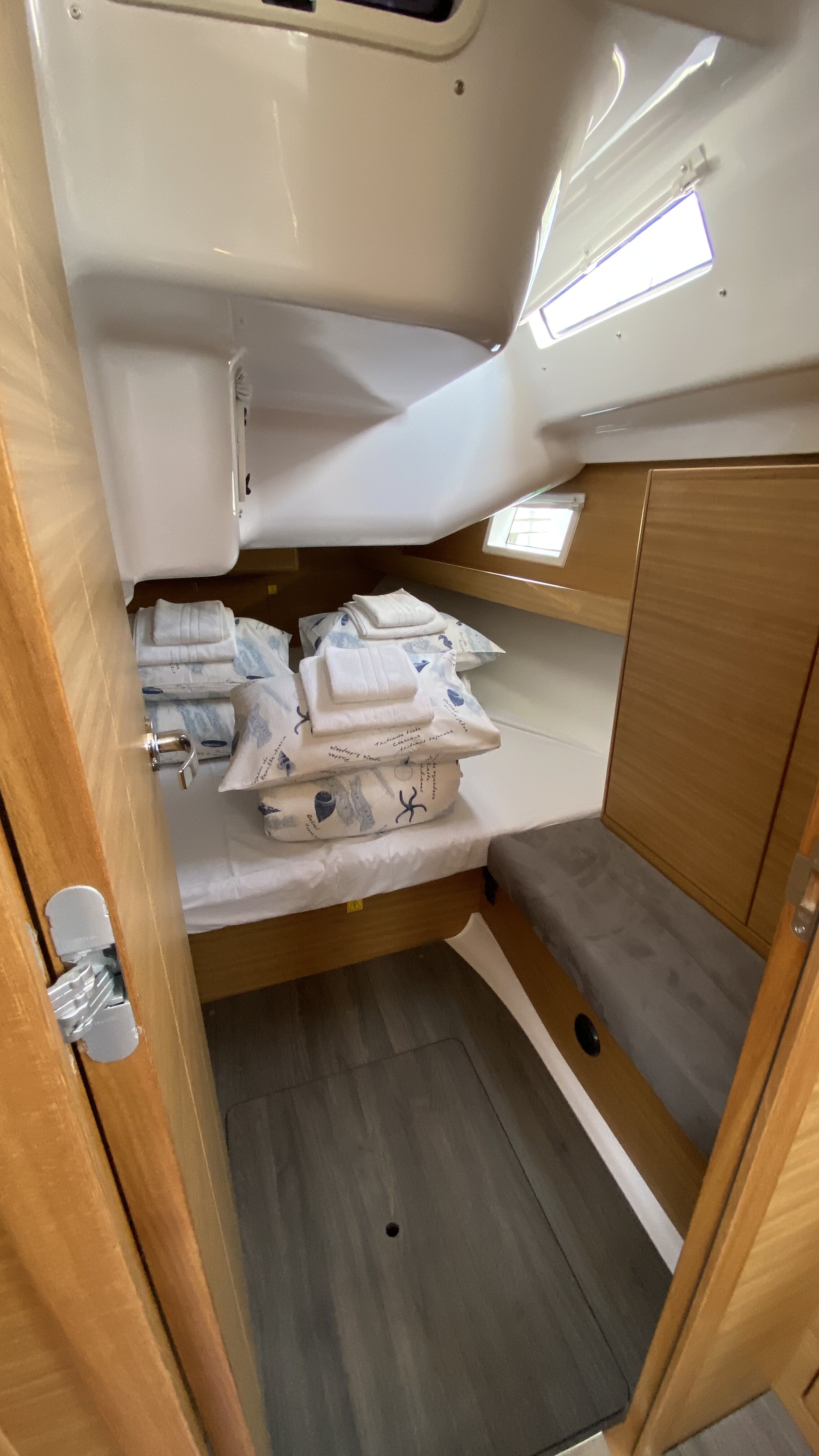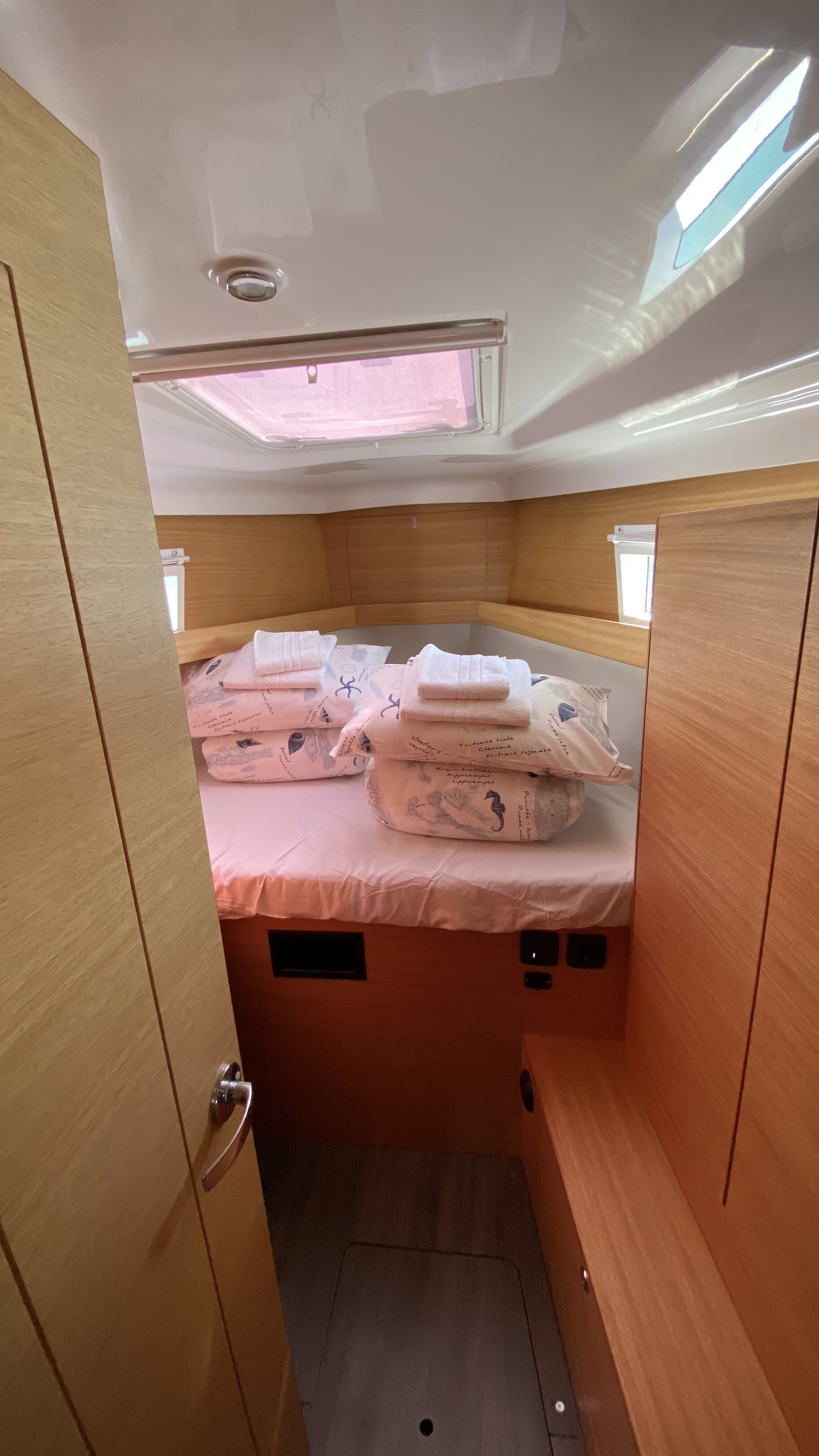 Segelyacht Elan Impression 45.1 Marita, Baujahr 2022, liegt im Marina Kastela, Split & Umgebung, Kroatien vor Anker. Es verfügt über 4 Kabinen und bietet Platz für 8 + 2 Personen mit 2 Toiletten. Bettwäsche und Küchenausstattung sind im Preis inbegriffen.