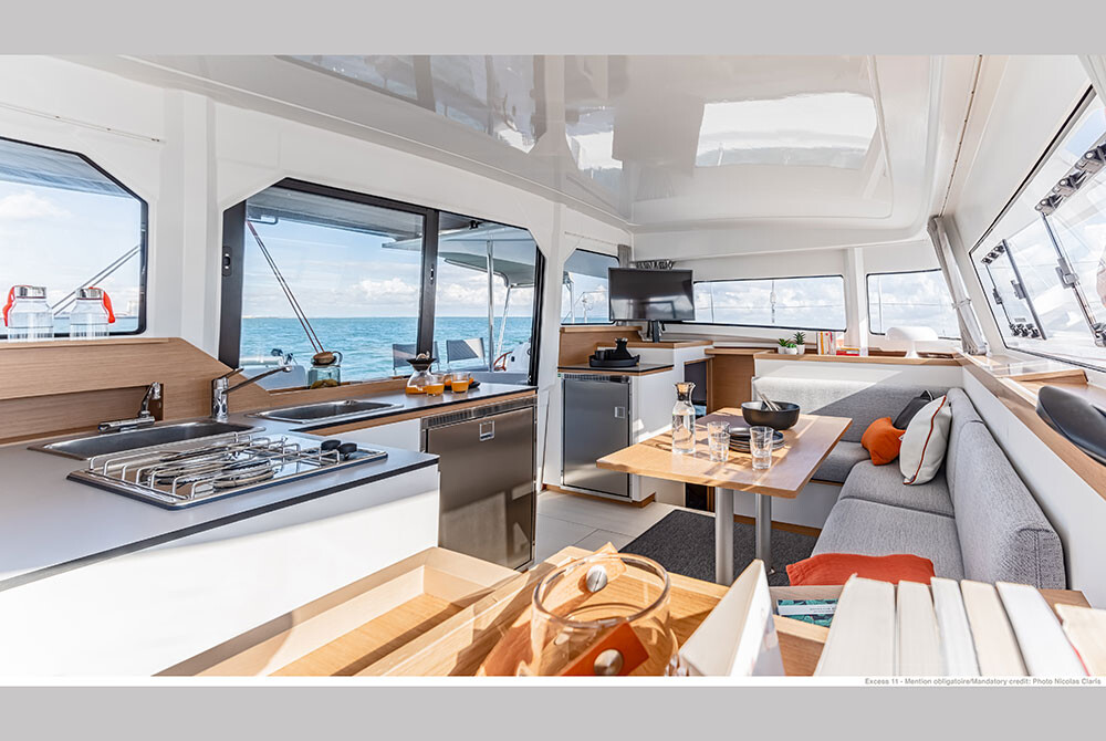 Katamaran Excess 11 Kale I, Baujahr 2023, liegt im Fethiye, Lykia Yacht Club, Aegean, Türkei vor Anker. Es verfügt über 4 + 2 Kabinen und bietet Platz für 8 + 2 Personen mit 2 + 1 Toiletten. Bettwäsche und Küchenausstattung sind im Preis inbegriffen.