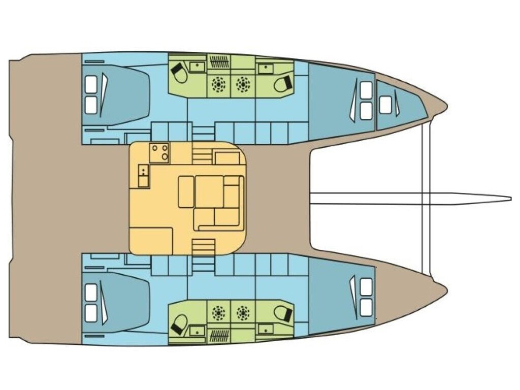 Katamaran Excess 14 MULAN, Baujahr 2025, liegt im Grenada, Port Louis Marina, Grenada, Karibik vor Anker. Es verfügt über 4 + 1 Kabinen und bietet Platz für 8 + 1 Personen mit 4 Toiletten. Bettwäsche und Küchenausstattung sind im Preis inbegriffen.