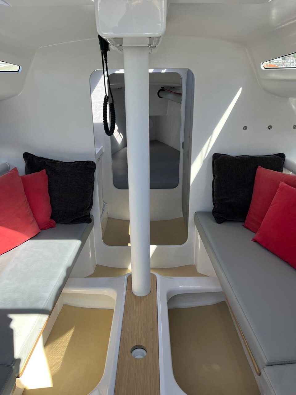 Segelyacht First 27 Šuferina, Baujahr 2022, liegt im ACI Marina Split, Split & Umgebung, Kroatien vor Anker. Es verfügt über 1 Kabinen und bietet Platz für 2 + 1 Personen mit 1 Toiletten. Bettwäsche und Küchenausstattung sind im Preis inbegriffen.