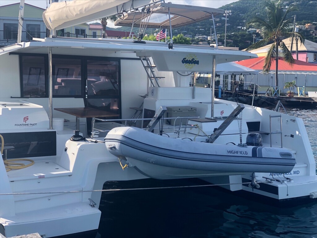 Katamaran Fountaine Pajot Astrea 42 SeaSea, Baujahr 2020, liegt im St. Thomas, Frenchtown Marina, US- Virgin Islands, US Virgin Islands vor Anker. Es verfügt über 4 Kabinen und bietet Platz für 8 Personen mit 4 Toiletten. Bettwäsche und Küchenausstattung sind im Preis inbegriffen.