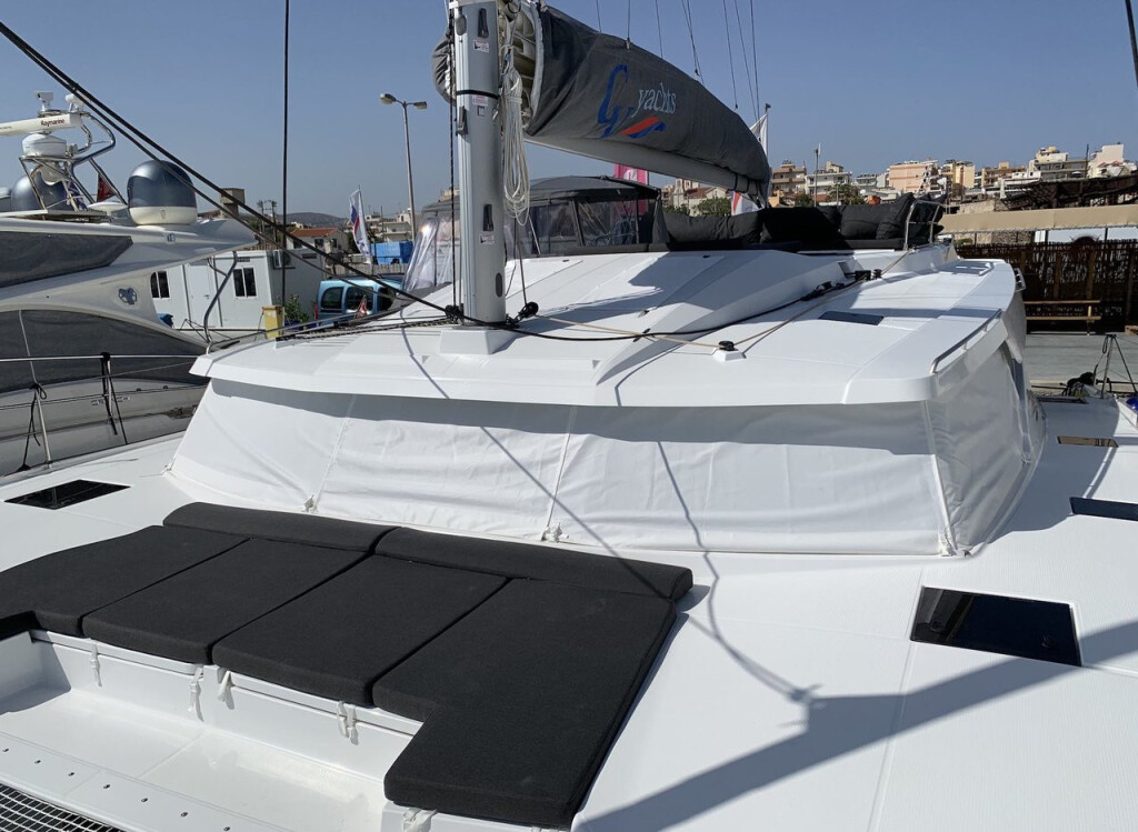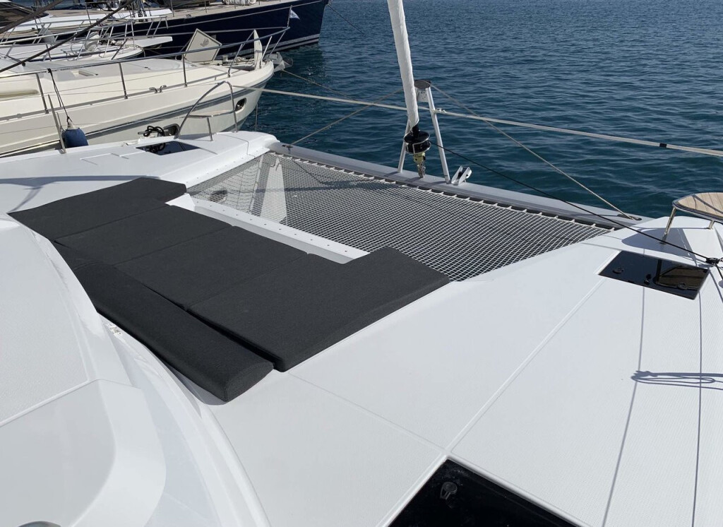 Katamaran Fountaine Pajot Elba 45 Lazuli, Baujahr 2020, liegt im Athens, Alimos marina, Peloponnes, Griechenland vor Anker. Es verfügt über 4 + 2 Kabinen und bietet Platz für 8 + 2 + 2 Personen mit 4 Toiletten. Bettwäsche und Küchenausstattung sind im Preis inbegriffen.