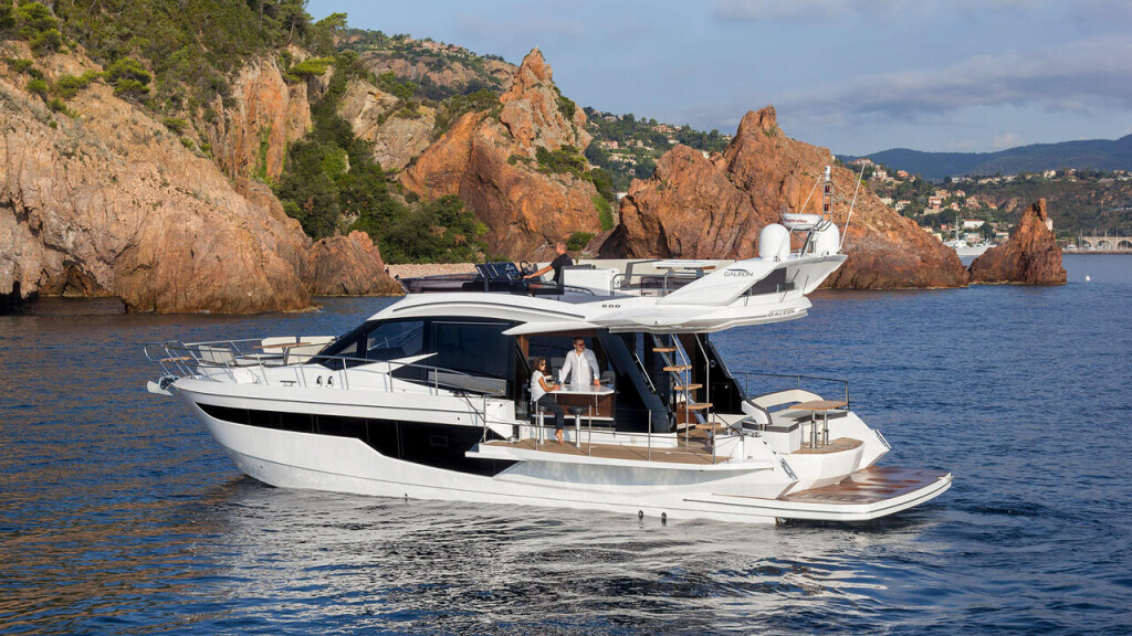 Motoryacht Galeon 500 Champ Atlantis, Baujahr 2023, liegt im Marina Kastela, Split & Umgebung, Kroatien vor Anker. Es verfügt über 3 + 1 Kabinen und bietet Platz für 6 + 1 Personen mit 2 + 1 Toiletten. Bettwäsche und Küchenausstattung sind im Preis inbegriffen.