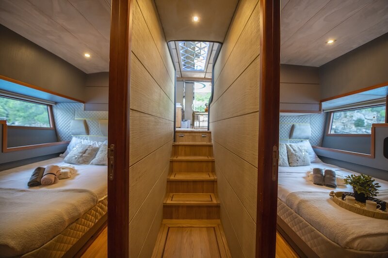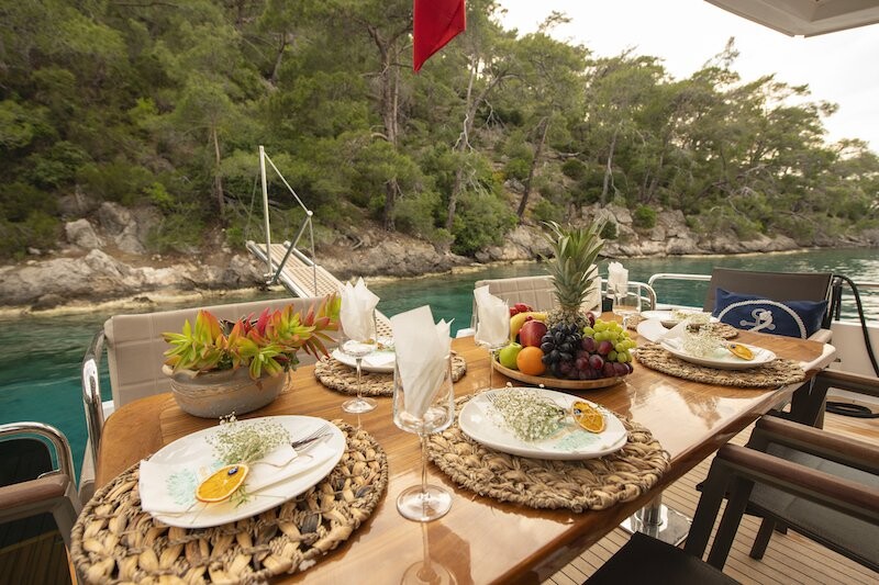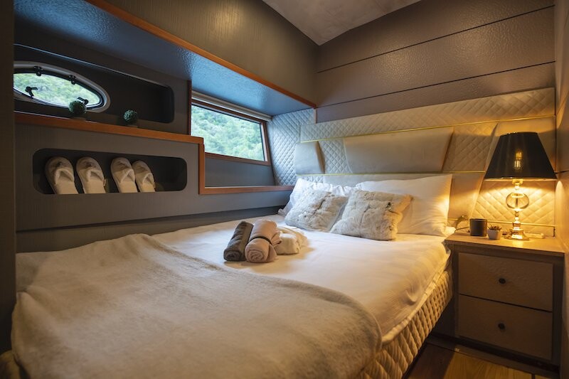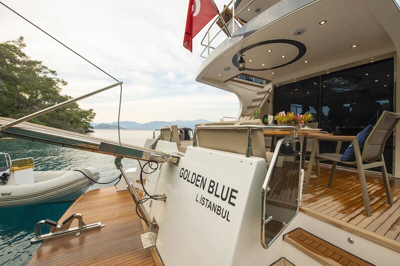 Motoryacht Golden blue Golden Blue, Baujahr 2023, liegt im Fethiye, Ece Saray Marina Resort, Aegean, Türkei vor Anker. Es verfügt über 3 Kabinen und bietet Platz für 6 Personen mit 2 Toiletten. Bettwäsche und Küchenausstattung sind im Preis inbegriffen.