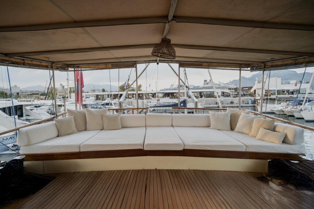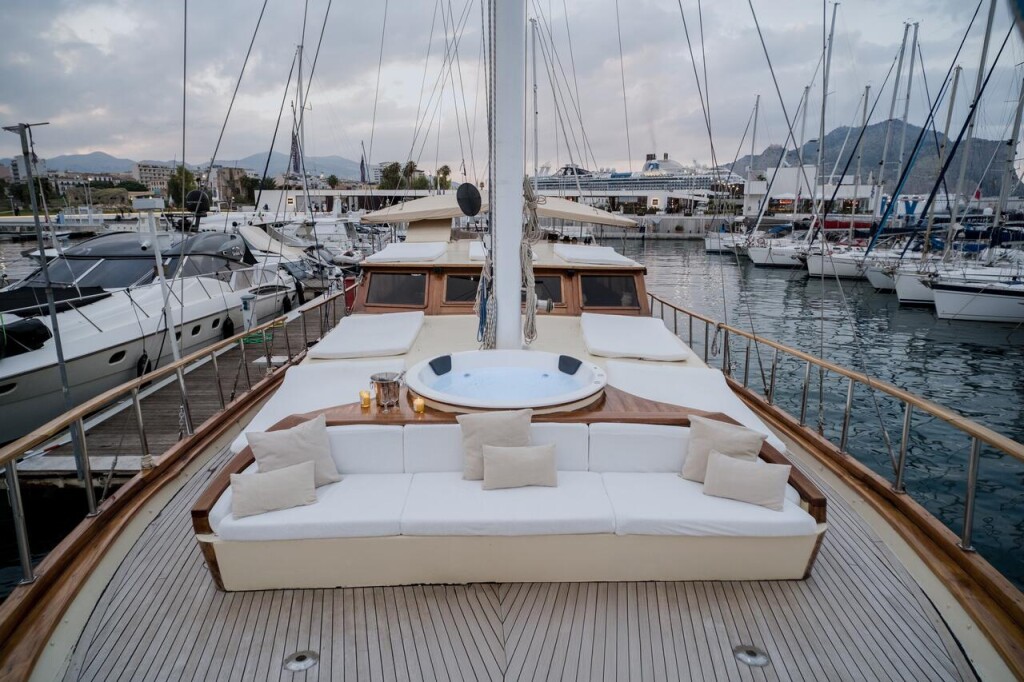 Gulet Hande - Capo Galera Hande - Capo Galera, Baujahr 2003, liegt im Capo D'orlando Marina, Sizilien, Italien vor Anker. Es verfügt über 6 Kabinen und bietet Platz für 12 Personen mit 6 Toiletten. Bettwäsche und Küchenausstattung sind im Preis inbegriffen.