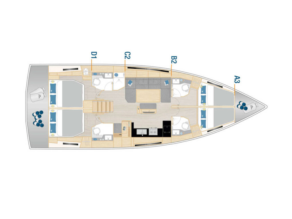 Segelyacht Hanse 460 Atmosphere, Baujahr 2023, liegt im Marina Kastela, Split & Umgebung, Kroatien vor Anker. Es verfügt über 4 Kabinen und bietet Platz für 8 + 2 Personen mit 4 Toiletten. Bettwäsche und Küchenausstattung sind im Preis inbegriffen.