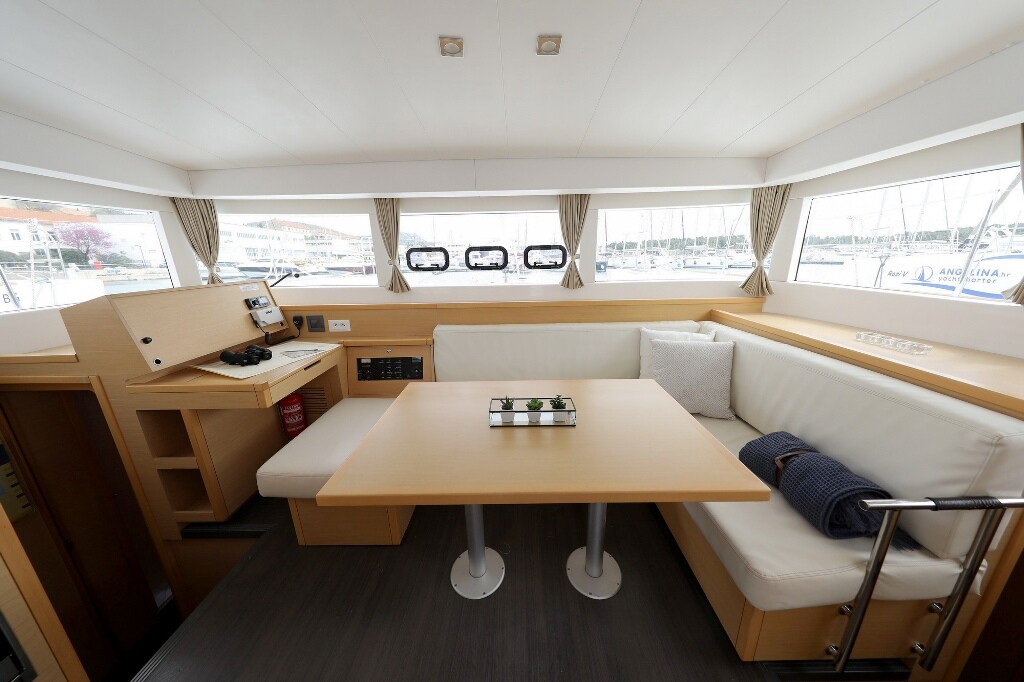 Katamaran Lagoon 39 Lilla V, Baujahr 2016, liegt im Marina Šangulin, Biograd, Zadar & Umgebung, Kroatien vor Anker. Es verfügt über 4 + 2 Kabinen und bietet Platz für 8 + 2 + 2 Personen mit 4 Toiletten. Bettwäsche und Küchenausstattung sind im Preis inbegriffen.