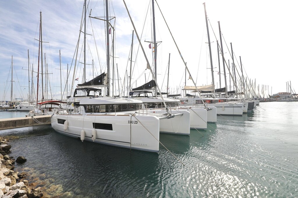 Katamaran Lagoon 40 Blue Angel, Baujahr 2019, liegt im Sukosan, D-Marin Dalmacija Marina, Zadar & Umgebung, Kroatien vor Anker. Es verfügt über 4 + 2 Kabinen und bietet Platz für 8 + 2 + 2 Personen mit 4 Toiletten. Bettwäsche und Küchenausstattung sind im Preis inbegriffen.