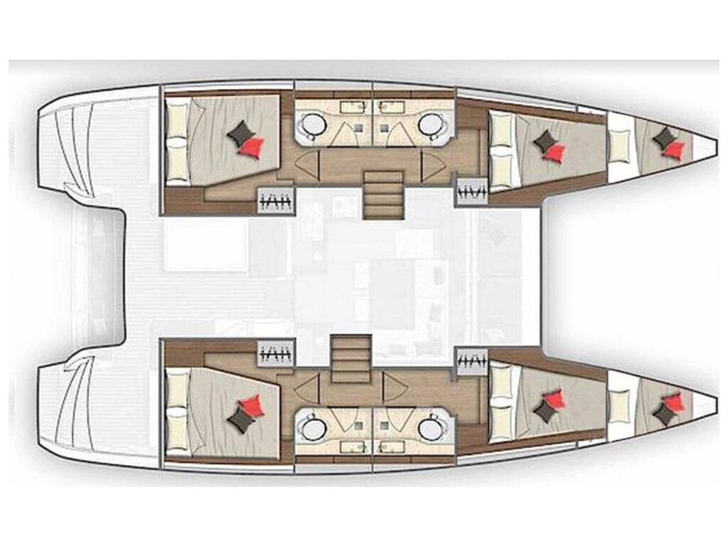 Katamaran Lagoon 40 Fratelli, Baujahr 2022, liegt im Corfu, Gouvia Marina, Ionisches Meer, Griechenland vor Anker. Es verfügt über 4 + 2 Kabinen und bietet Platz für 10 + 2 Personen mit 4 Toiletten. Bettwäsche und Küchenausstattung sind im Preis inbegriffen.
